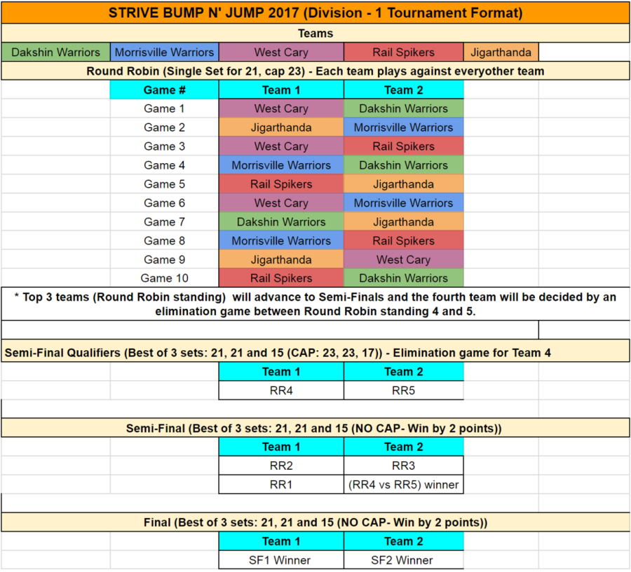 1) Games will start at 10.00 AM sharp for Division1, please be at the courts by 9.30AM for warmup