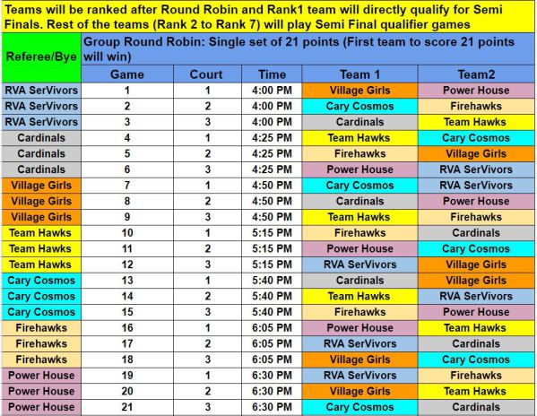 Mini Tourney Schedule
