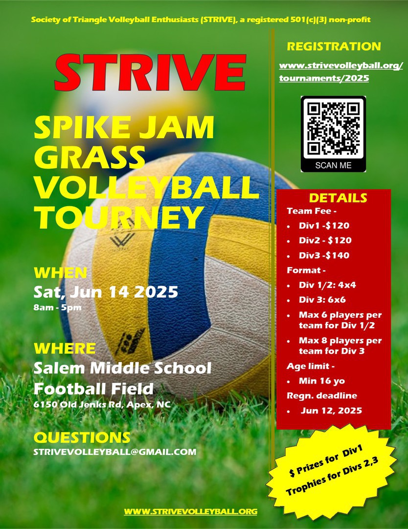 - If you are looking for a team to play with, reach out to one of the STRIVE Core team members (strivevolleyball@gmail.com) and we will connect you with people looking for players